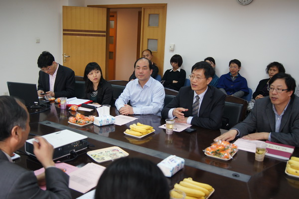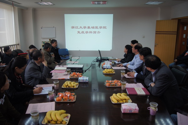 首先双方进行了支部交流。我校基础医学系四支部是以免疫学科和病原生物学科系教工为主组成的支部。支部成员们长期奋斗在教学科研一线,为高校人才培养和学科建设工作踏实贡献;该支部凝聚力强,成员由免疫学科系和病原生物学科系20名党员组成。支部在教学科研等中心工作上成果累累。除承担大量本科生课堂授课、学生SRTP项目、指导毕业设计、参与教学改革等高校人才培养等工作外,该支部更在一流学科建设上凝心聚力,取得不俗成效。支部成员曾获得过全国百篇优博论文2篇;主持、参与863等国家重大科研项目多 项,在研国家自然科学基金课题十数项;每年发表在国际学术期刊上的论文十余篇。去年该支部党员连续在PNAS、Vaccine 等TOP学术期刊上发表论文,极大地提升了学科建设的水平。在创先争优活动一开始,该支部就根据支部工作特色,围绕工作重心,凝练提出 “支部创先进,党员争优秀,学科建一流”的目标。