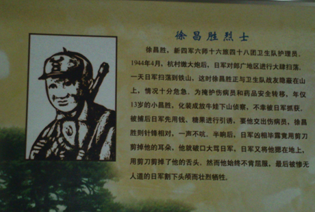 有着“江南小延安”美称的新四军苏浙军区纪念馆位于长兴县一座清代咸丰年间民宅内。纪念馆四周古槐参天,银杏华盖,墙面苔绿斑斑,无不透露着历史的悠久。馆内陈列展出的革命文物、历史照片,这些历史文物系统的记录了以粟裕、叶飞、王必成、江渭清领导的苏浙军区战斗历程。在讲解员的生动讲解下,大家仿佛重回了那个战火纷飞的年代,听到了穿越历史时空的革命呐喊。其中最令人印象深刻的是小烈士徐昌胜,小小年纪却有着铁人般的毅力,面对日军的威逼利诱,始终不松口,直至最后被割下头颅都没有屈服。
