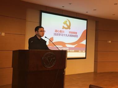 此次理论学习主要由两部分组成。第一部分由基础医学系总支委员杨巍教授主讲,杨老师以十九大主题为切入口,回顾了中国共产党的建立到新中国的成立这段期间中国共产党人全心全意付出和牺牲,从而进一步重点阐述了“不忘初心,牢记使命”这一关键主题。杨老师向我们展示了十九大的总体内容、七个“新”、“八个明确,十四个坚持”、科教及创新、历史贡献等内容,结合实际工作,杨老师特别强调了科教、人才及创新与我们息息相关的事项内容。作为高层次人才的我们是国家创新驱动的栋梁,尤其是现在国家倡导新药研发尤其是创新药的开发,特别需要我们基础医学研究者投身其中,正确理解和把握十九大精神,将知识与创新更好地联系在一起,为创新型中国的发展献出自己的一份力量。