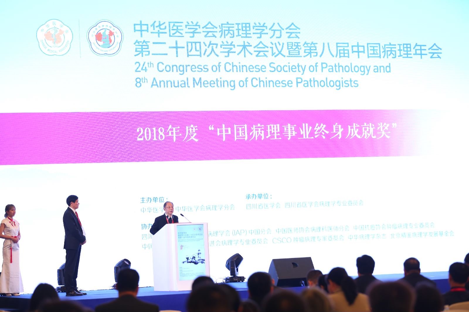近日,在成都举行的第八届中国病理年会上,必赢官网退休教师,原病理学系主任徐英含教授荣获中华病理学会颁发的2018年度终身成就奖。该奖项于2011年在杭州举行的首届中国病理年会上设立,由专门委员会负责审核来自全国各地的提名,每年不超过两名入选者。该奖项为国内病理学界最高荣誉,表彰那些为中国病理学事业做出杰出贡献的病理学家,首届获奖者为国内病理学泰斗刘彤华院士和吴秉铨教授。