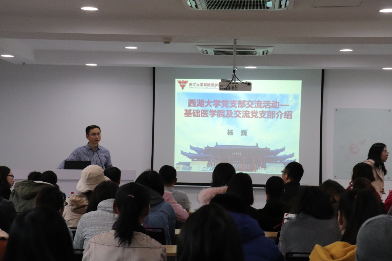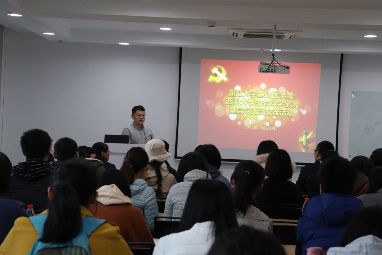 2018年11月23日上午,437bwin必赢国际官网生物物理学系、药理学与生理学系和神经生物学系师生联合党支部共51名师生党员集体前往西湖大学云栖校区访问交流。