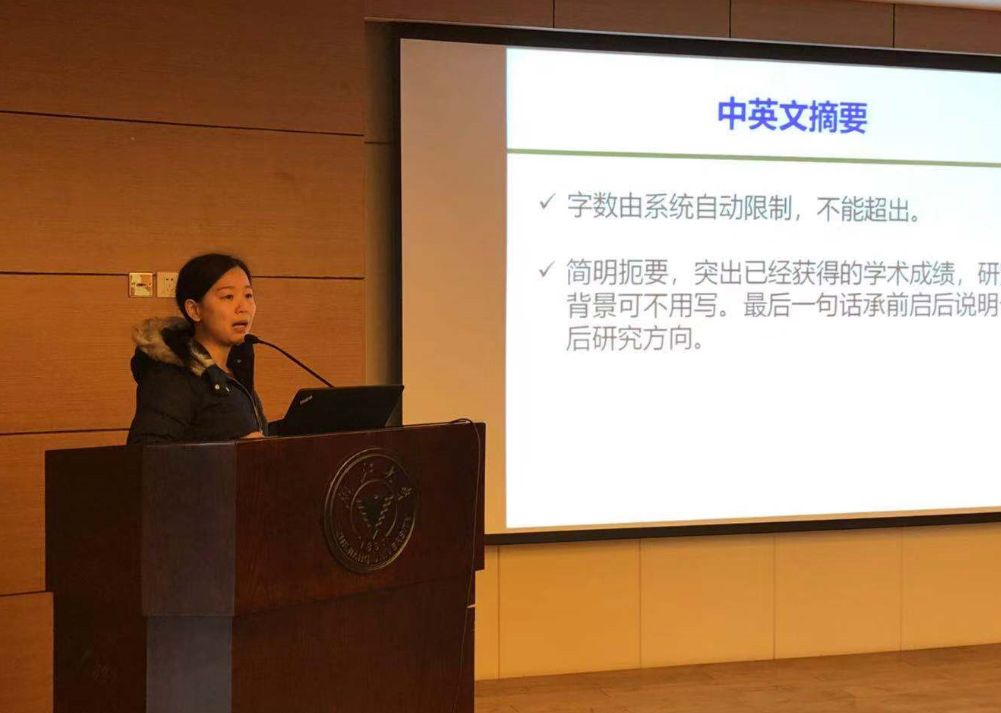 会上,医学院科研项目与成果办负责国家自然基金项目管理的郑轶主任结合2019年申报形势,分析了申报注意事项和形式审查要点,强调细节在评审过程中的重要性,结合以往经验为各位申报老师标书的撰写提供了参考建议。