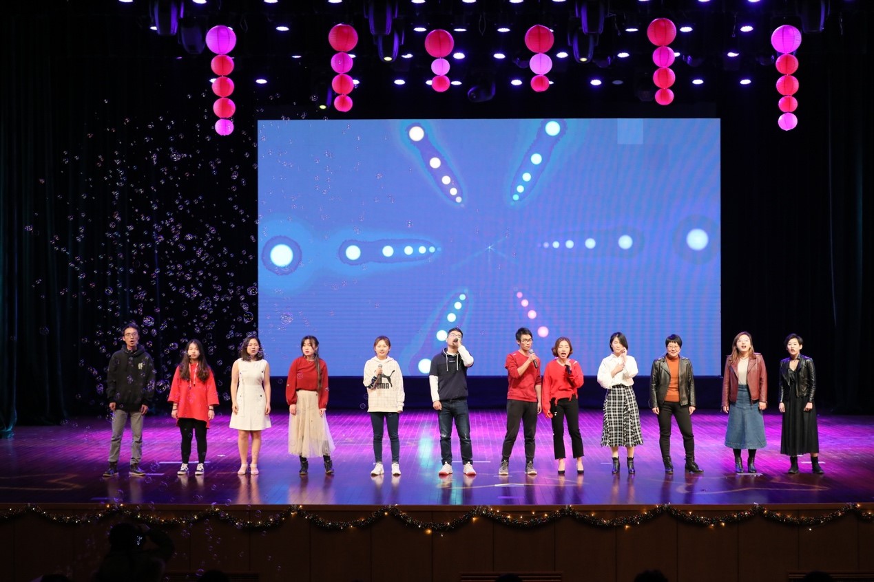 晚会节目精彩纷呈,第一篇章—峥嵘岁月。12月刚刚组建完成的437bwin必赢国际官网BMS乐队带来的歌曲《寻水的鱼》,乐队悠扬的曲调让大家沉醉;李晓明老师课题组的小品《实验室的一天》以风趣的方式展示了437bwin必赢国际官网师生的科研生活;紧接着,男神郭国骥老师为我们带来了一曲《沁园春—雪》,引掀起晚会高潮。