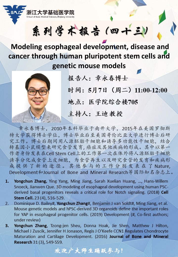 Modeling esophageal development, disease and cancer through human pluripotent stem cells and genetic mouse models