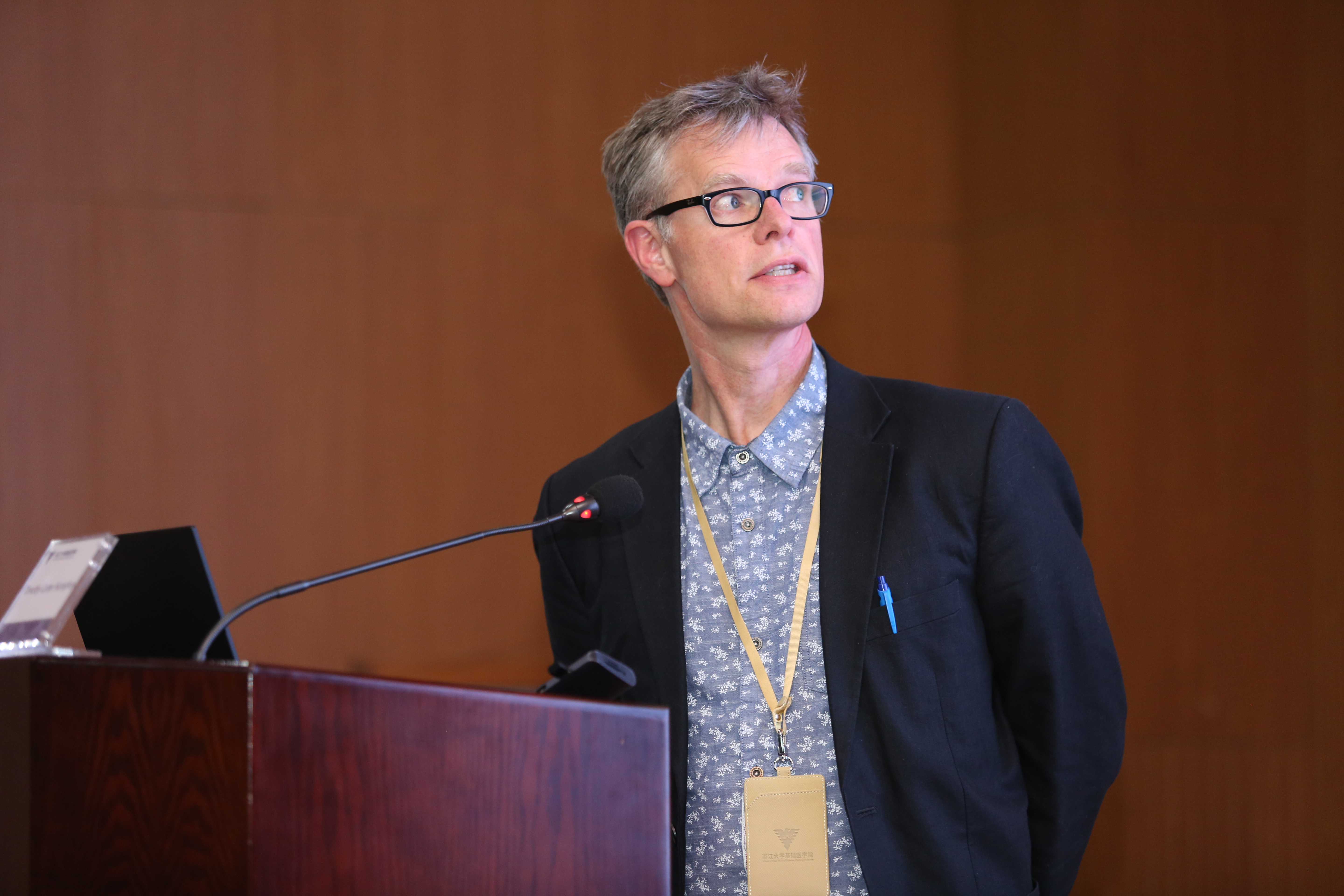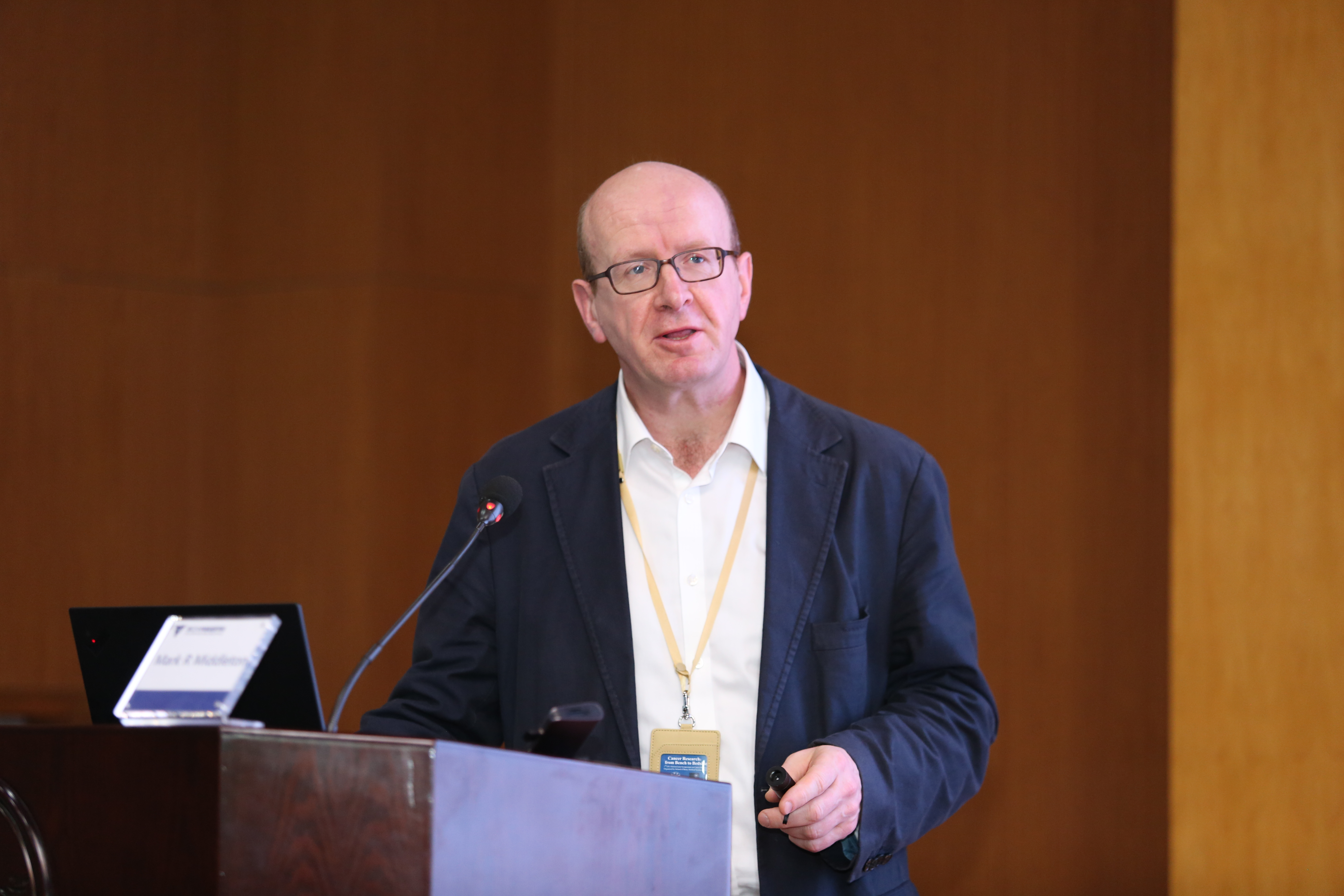 Mark R Middleton教授,牛津大学肿瘤学系主任,代表牛津大学致辞。他表示能与团队一起来访浙大非常高兴,也非常期待接下来的学术交流,希望建立更深度的研究和教育方面的实质性合作。