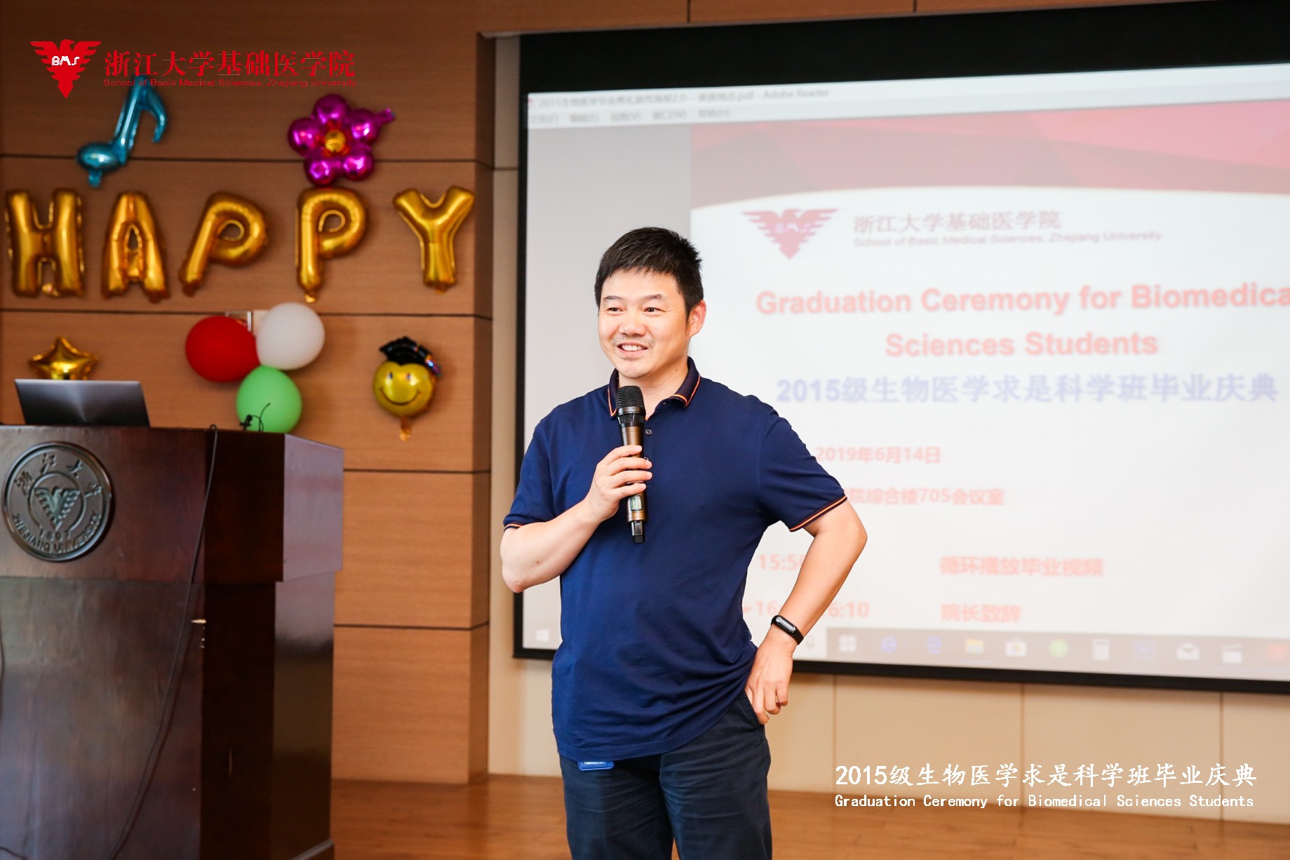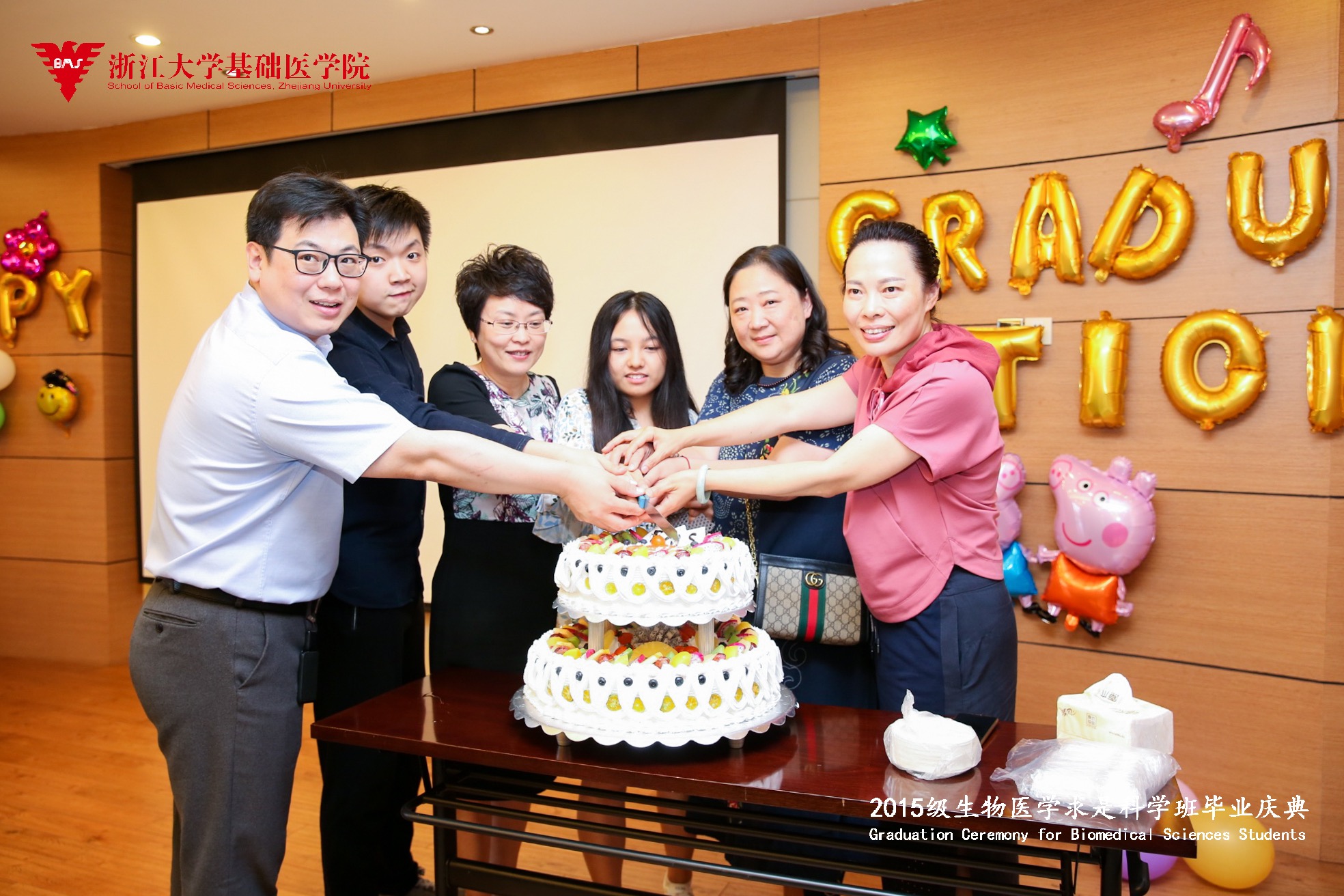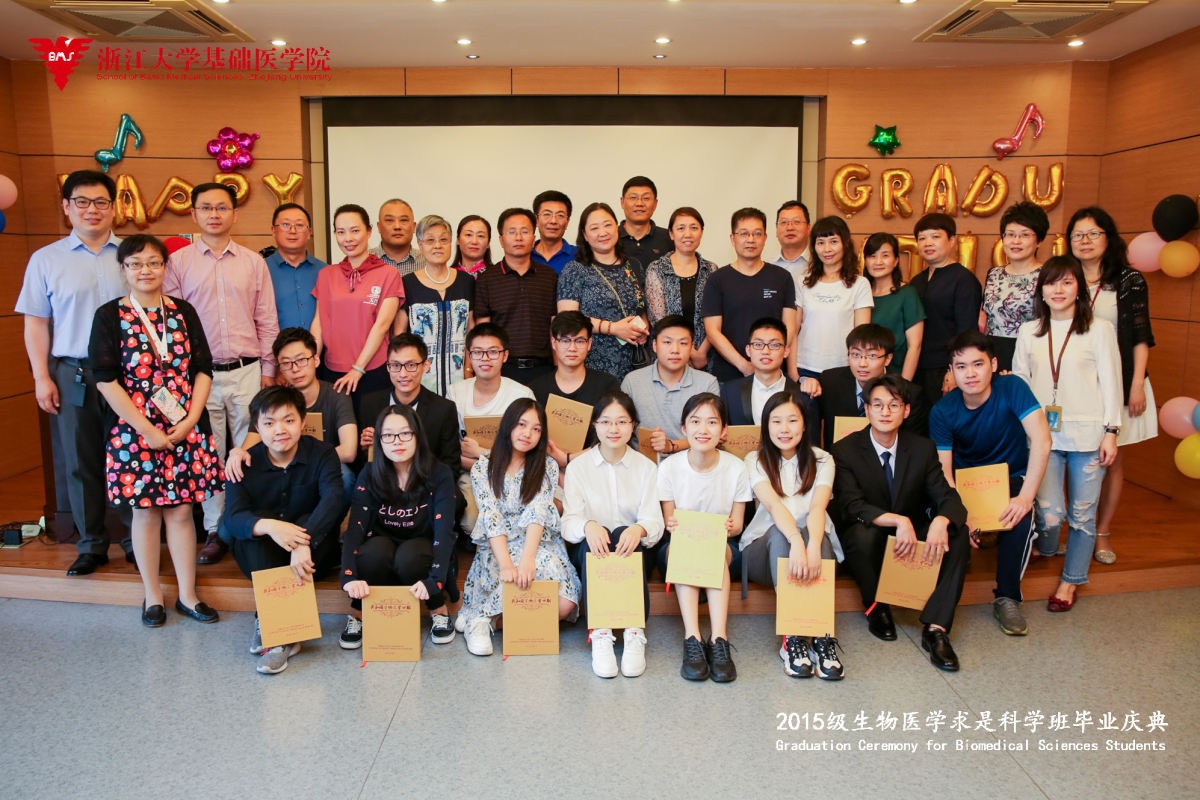 6月14日下午,437bwin必赢国际官网2015级生物医学求是科学班毕业庆典在医学院综合楼705隆重举行。437bwin必赢国际官网副校长罗建红教授,437bwin必赢国际官网院长王青青教授、副院长杨巍教授、437bwin必赢国际官网—爱丁堡大学联合学院院长欧阳宏伟教授、437bwin必赢国际官网—爱丁堡大学联合学院副院长,2015级求是医学班班主任鲁林荣教授、专业导师代表方马荣教授等人出席盛会,典礼由学院副院长王迪教授主持。