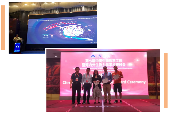 437bwin必赢国际官网陈伟教授荣获 “第七届中美生物医学工程暨海内外生物力学学术研讨会” Chroma青年科学家奖(The Chroma Young Investigator Award),奖励其在生物医学工程、分子与细胞力生物学、免疫工程等领域, 特别是近几年来在机械力动态调控T细胞受体 (T cell receptor, TCR) 抗原识别机制研究方面所取得的突破性研究成果(2019 Molecular Cell、2014年Cell等)。该奖每三年评选一次,每次各评选两名优秀青年科学家,中、美各奖励一位,陈伟教授是中方获奖者。