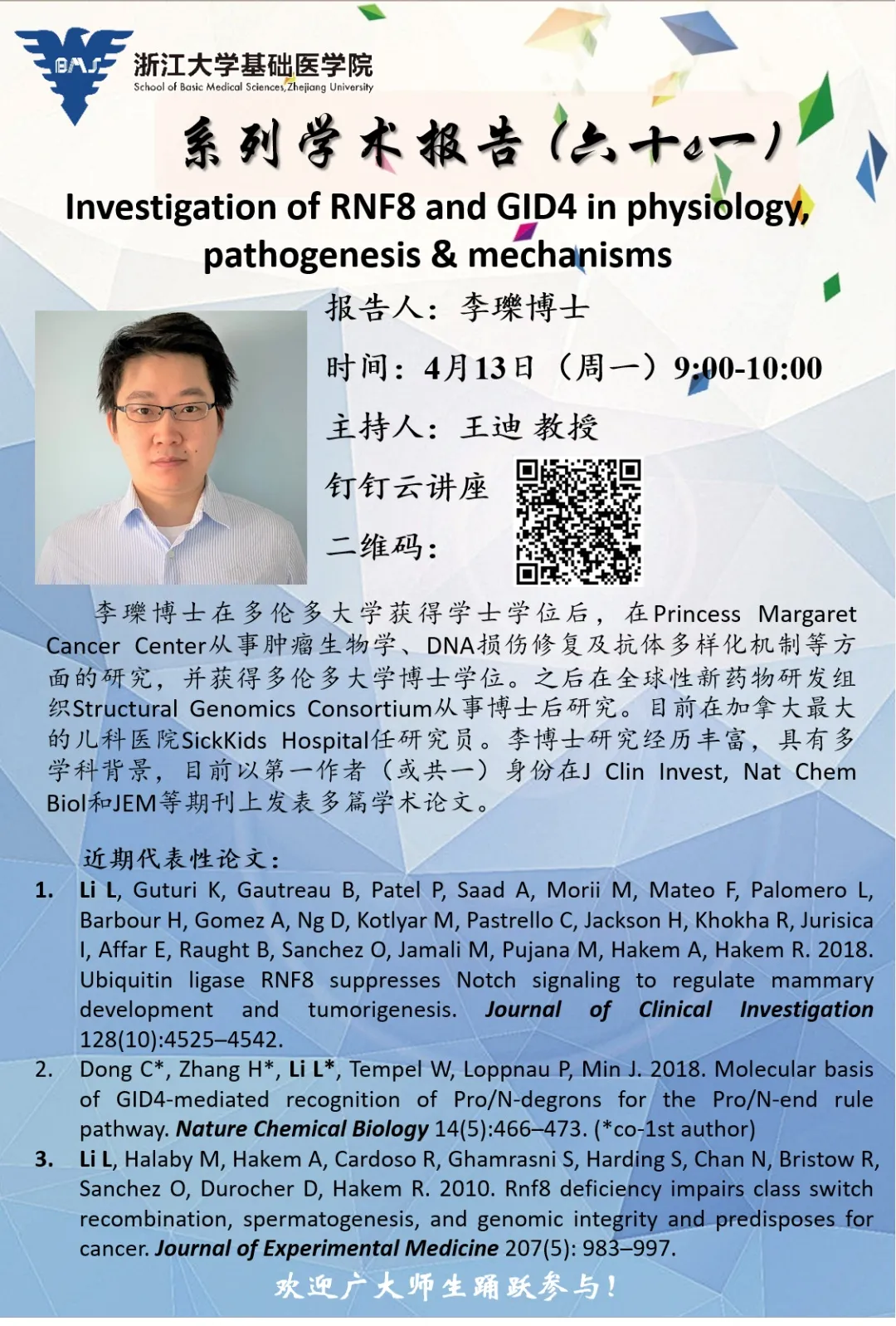 Investigation of RNF8 and GID4 in physiology, pathogenesis & mechanisms