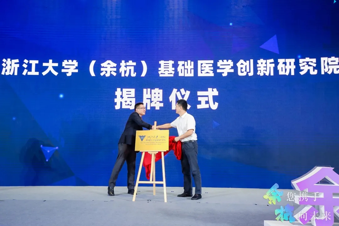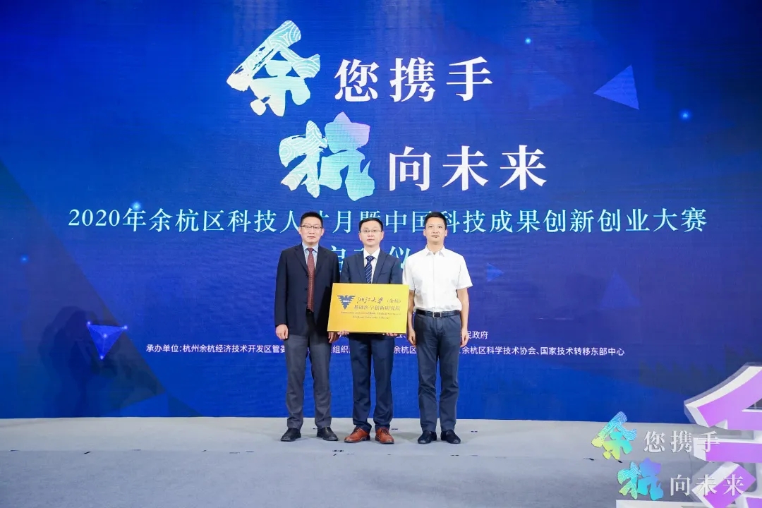 2020年5月20日上午,余杭区科技人才月暨中国科技成果创新创业大赛启动仪式在临平大道502号茧·Space 举办,437bwin必赢国际官网(余杭)基础医学创新研究院揭牌活动在该仪式上进行。余杭经济技术开发区管理委员会副主任施科琦与437bwin必赢国际官网医学院副院长柯越海教授共同为研究院揭牌。
