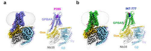 图1:P395和INT-777激活的GPBAR-Gs复合物结构(分辨率为3.0Å)