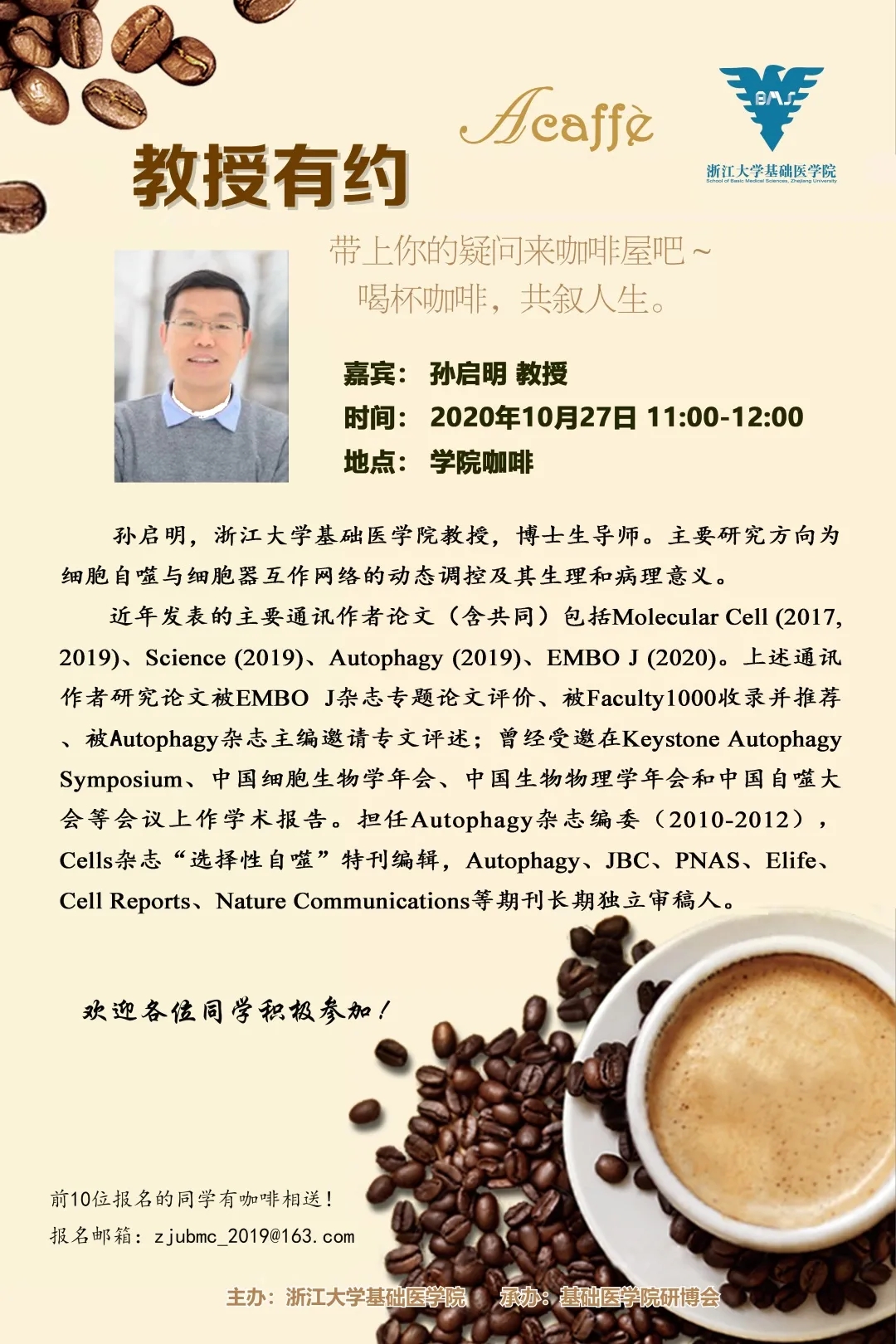 喝杯咖啡,共叙人生——2020年10月教授有约预告