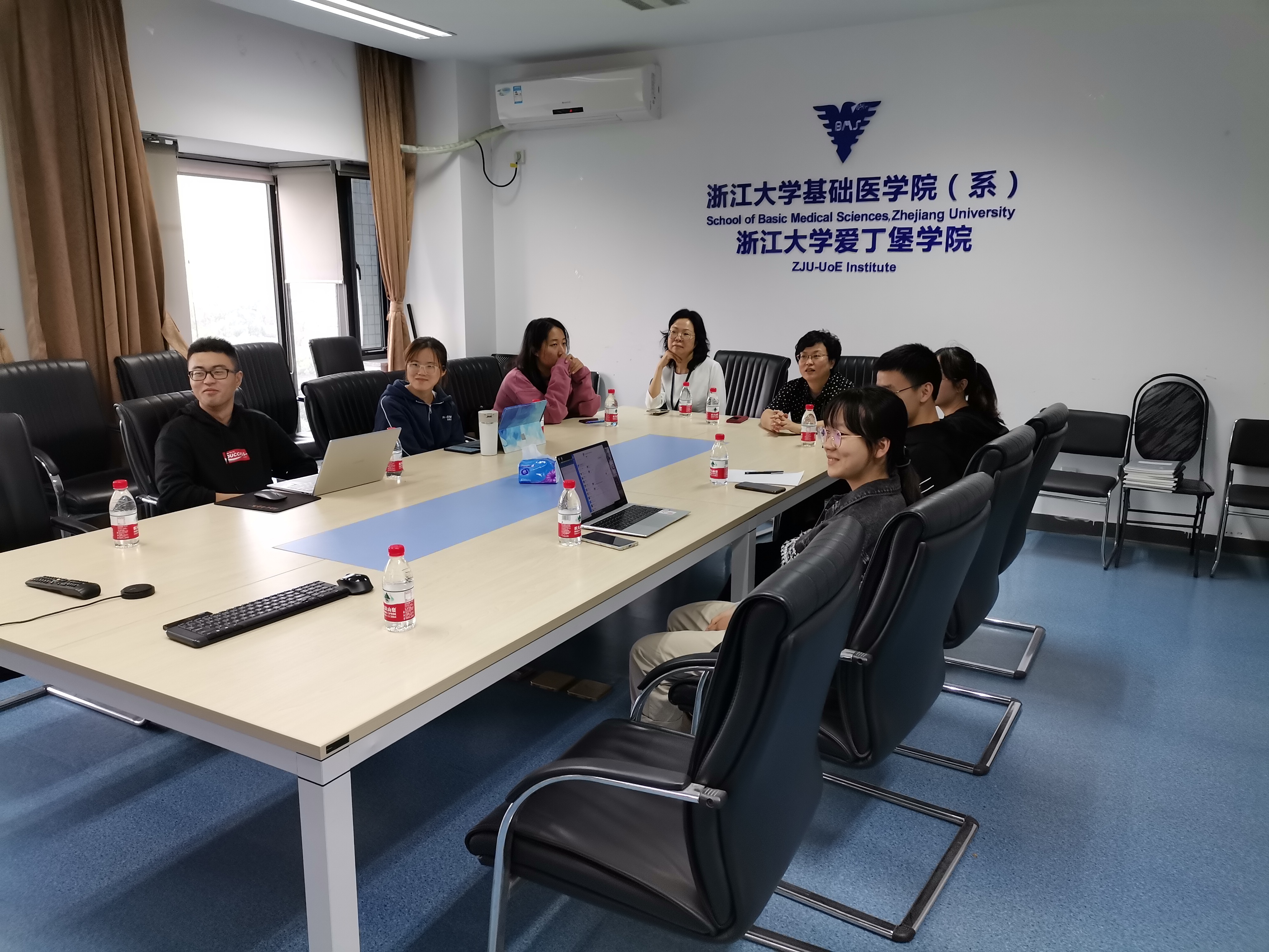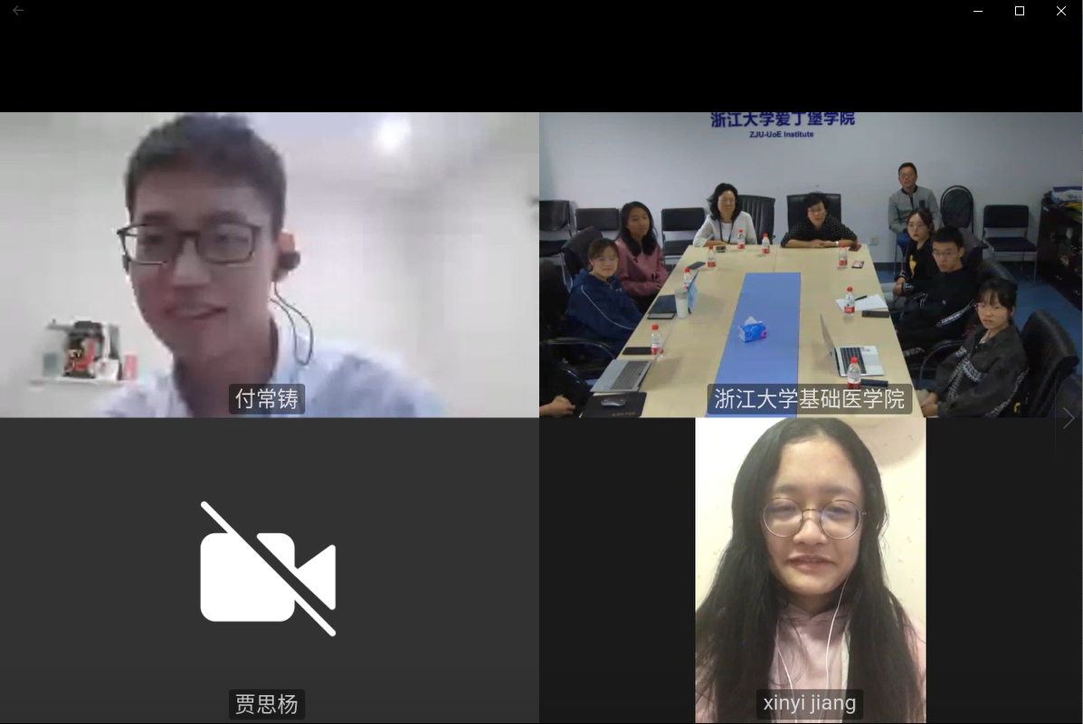2020年10月30日,全程导师王青青教授、新生之友林海燕老师、基础医学求是科学班同学在医学院综合楼811会议室与2015级学长付常铸(剑桥大学博士生)、贾思杨(爱丁堡大学博士生)、蒋欣怡(爱丁堡大学博士生)进行了线上交流会。这次交流会主要对同学们关心的学业学习和出国学习进行了深入交流。