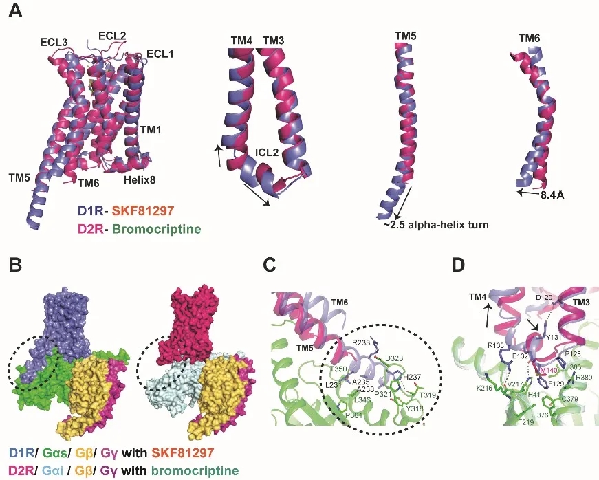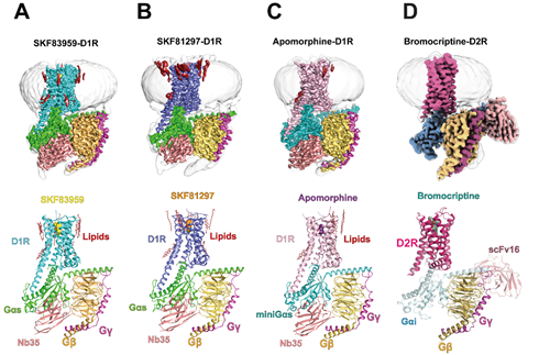 图1. D1R-Gs和D2R-Gi复合物结构