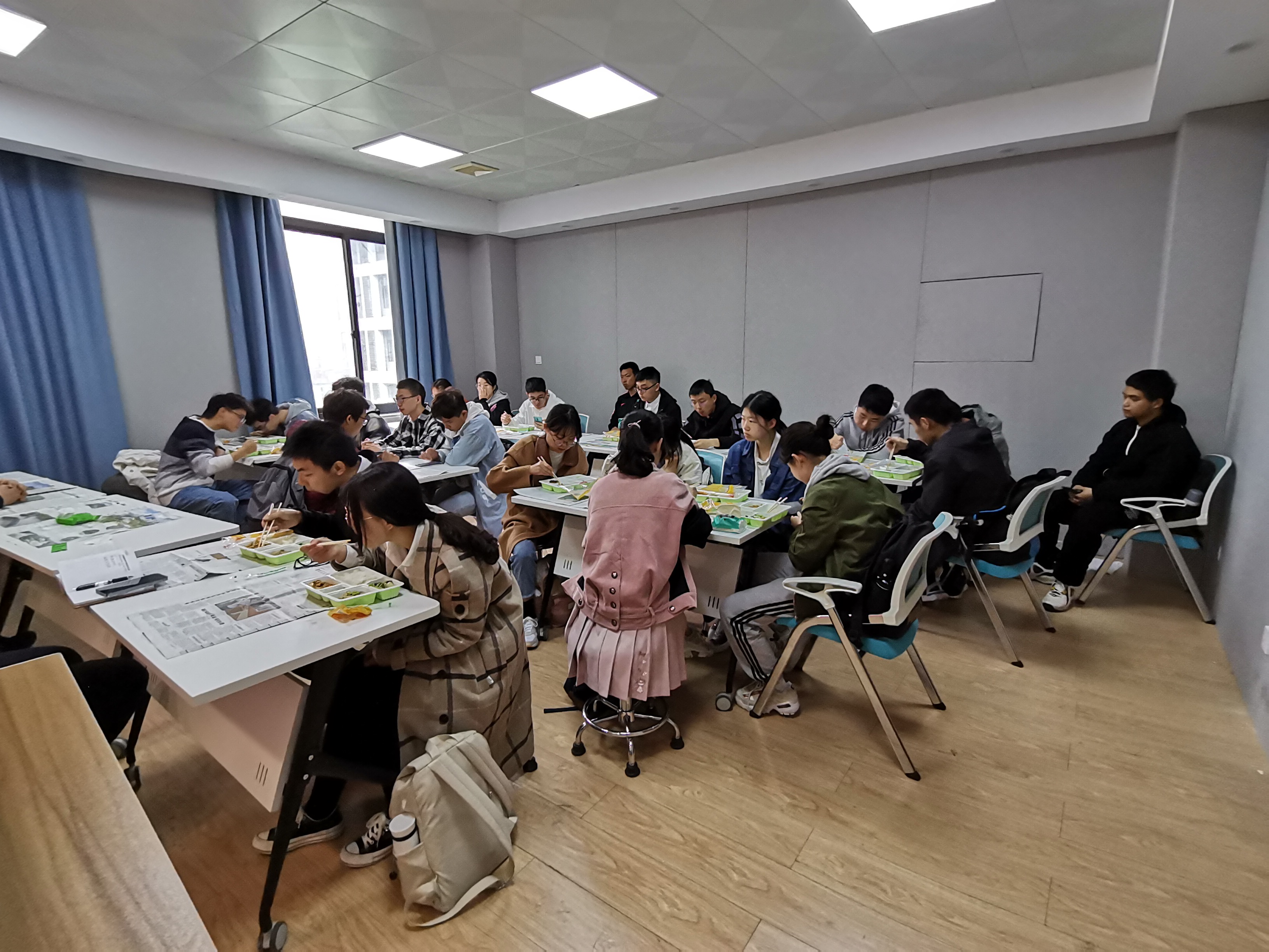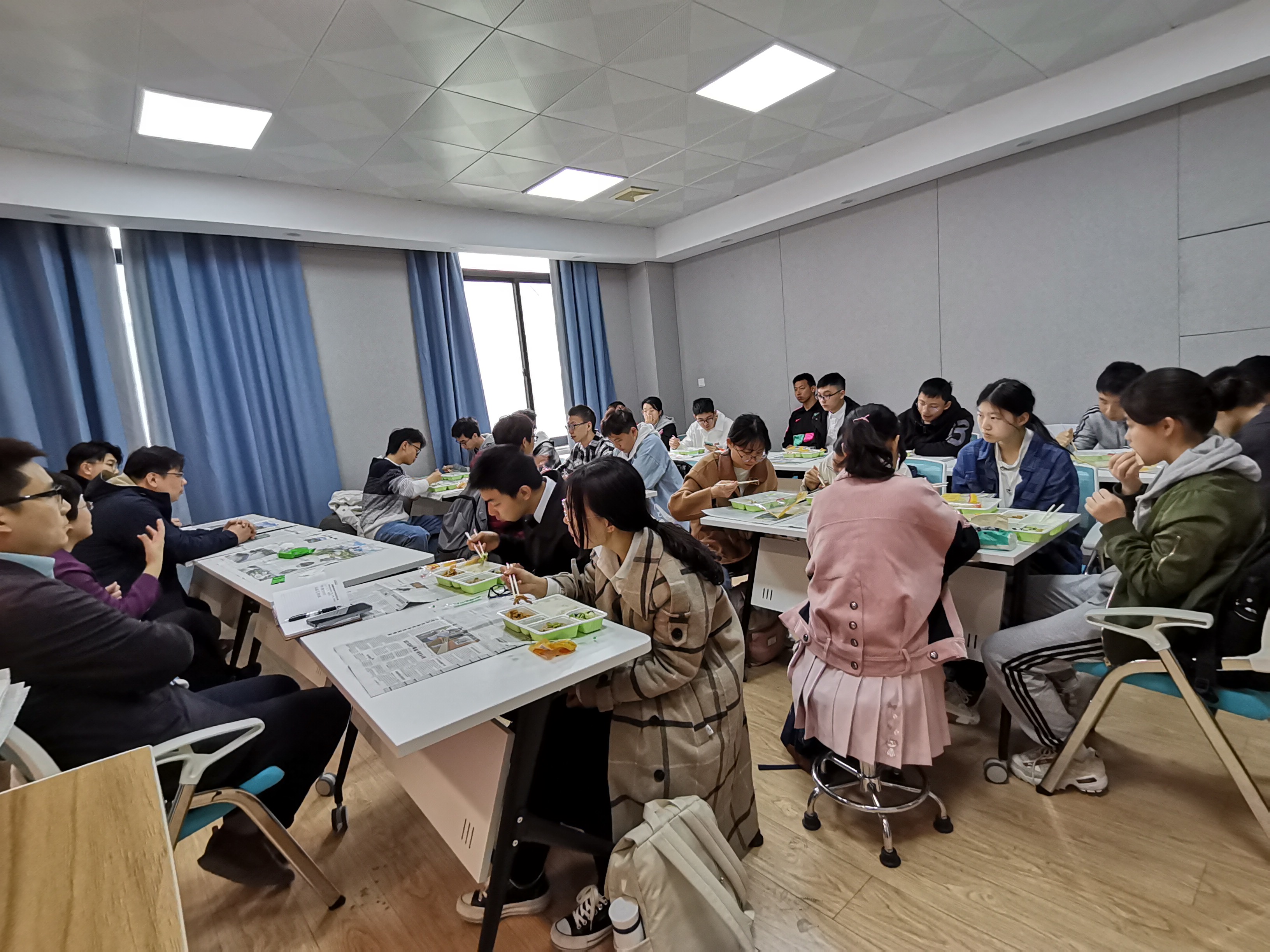 本次班会以午餐会形式进行,学院为忙于上课的同学们准备好便当,共同在午餐期间亲切交流。同学们就实验室轮转、学术提升计划、主干课程学习等方面提出了问题,师生共同探讨确定了许多重要问题。考虑到大一期间课程设置等原因,实验室轮转改定于大一暑期开始,持续至大二冬学期末,同学们的专业导师也将在冬学期末选定。学术提升计划也将坚持每周开展,并结合同学们的反馈来调整内容,以期帮助达成更好的了解和准备。两位院长提到,建议前往三个实验室进行轮转,同时根据个人意愿可以进行调整,鼓励同学们积极开始了解感兴趣的方向,自行联系实验室导师进行交流等。