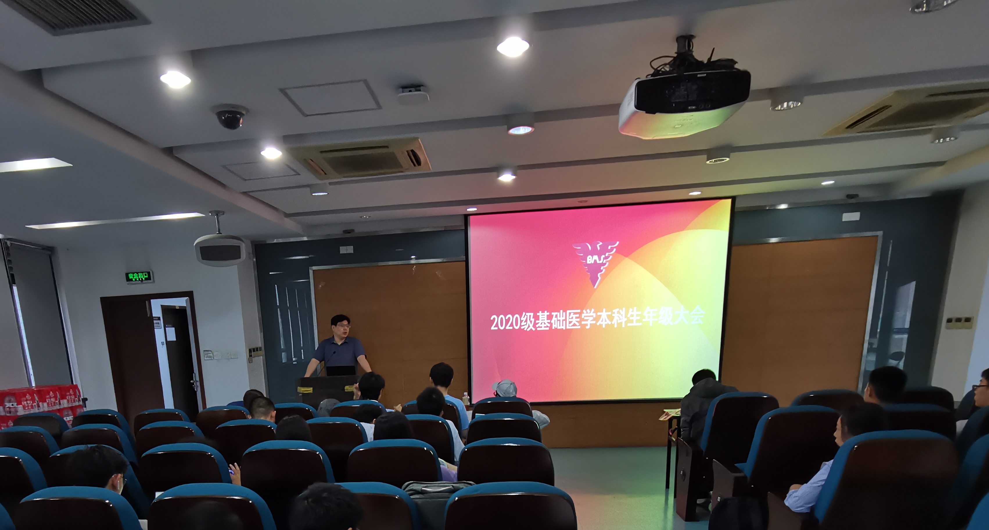 2021年6月18日,在医学院综合楼205召开了第四次年级大会暨实验室安全教育。王迪教授主持会议,2020级基础医学强基计划班、2020级求是科学班全体同学、医学院实验室与设备管理办公室的周小峰老师、基础医学系办主任林海燕老师参加会议。本次大会主要内容包括:实验室轮转相关事宜安排、培养方案修订建议与实验室安全教育。