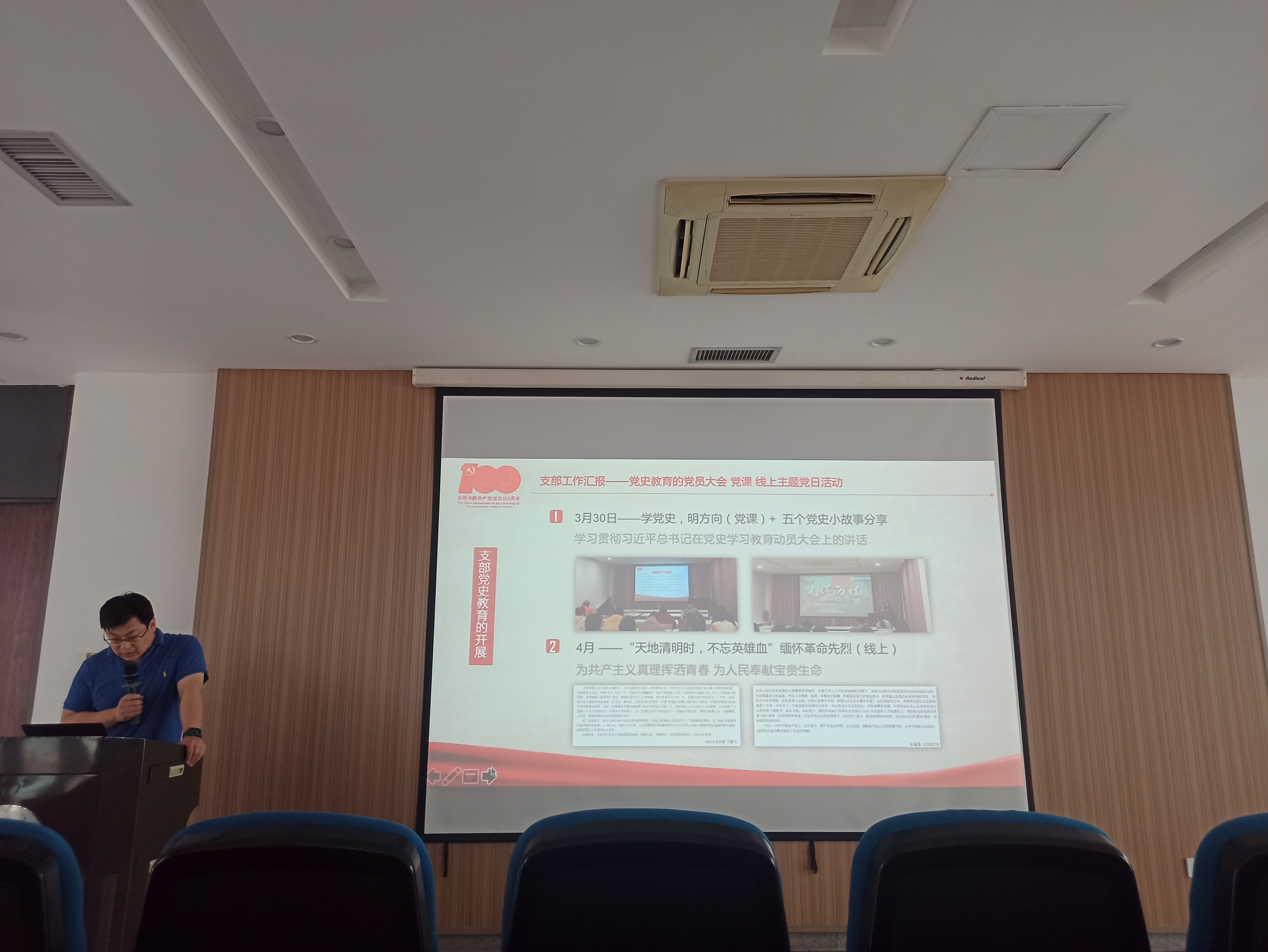会议第一项,王迪教授向大家汇报了支部2021年上半年开展的活动,主要围绕着党史教育的党员大会,党课和主题党日活动三种形式开展。曾举办邀请柯越海教授介绍“浙医历史”的主题党课,每个实验室分享“党史小故事”,支部全体成员一起观看《中国医生》影片等等活动,内容丰富,形式多样。接着,王迪教授呼吁大家积极献言献策,争取在今后举办一些更有创新性的支部活动。