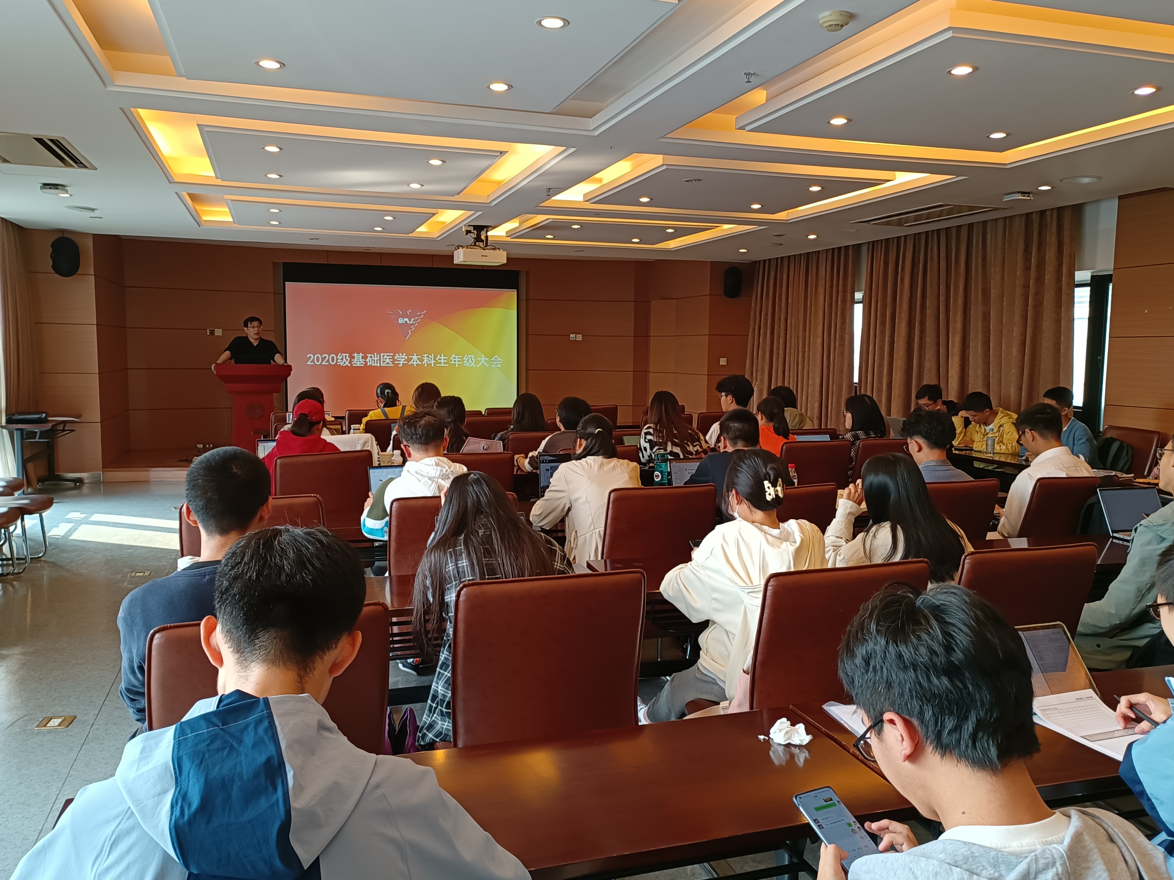 金秋送爽,丹桂飘香。10月29日下午1:30,基础医学20级本科生年级大会于437bwin必赢国际官网医学院综合楼705正式举行。出席本次会议的有437bwin必赢国际官网副院长王迪教授及20级基础医学的全体本科生。
