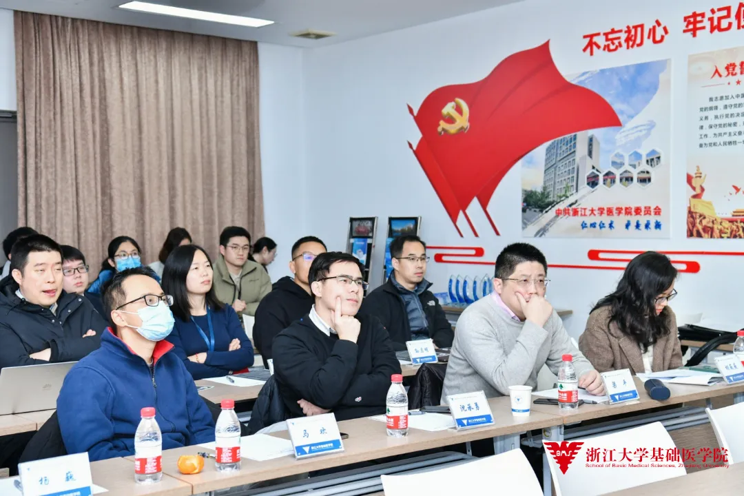 西湖大学郭天南研究员首先介绍了如何通过 AI 分析蛋白质组大数据,进而掌握疾病发生发展的规律并探索治疗新方法。浙一医院盛剑鹏研究员分享了原位质谱成像研究肿瘤免疫微环境的相关成果。柯越海教授展示了蛋白质翻译后修饰调控肿瘤免疫的最新进展。浙大-爱丁堡大学联合学院刘坚研究员通过染色质三维结构分析等多组学来研究肺癌的发病机制。同济大学医学院王平副院长带来了营养重塑肿瘤微环境的最新进展。附属妇产科医院钱俊斌研究员分享了单细胞应用在免疫治疗领域的经验。张红河教授阐述了环状RNA circRHOBTB3在结直肠癌中的作用机制。浙大-爱丁堡大学联合学院郭伟和Chan Kuan Yoow两位研究员分别介绍了一种全新的细胞鉴定系统和中心体异常如何促进癌症中的细胞周期异常进展。现场师生踊跃提问,气氛热烈。