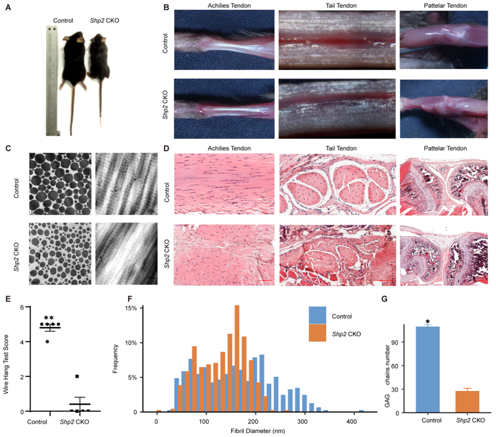 图3. Scx-Cre; Shp2fl/fl 小鼠肌腱成熟障碍