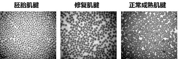 图 1. 损伤肌腱的疤痕纤维与胚胎肌腱纤维类似,但是无法成熟变粗