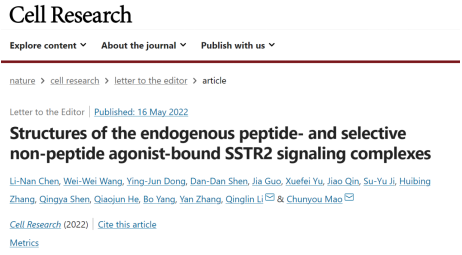 综上所述,本研究阐明了生长抑素受体SSTR2的配体识别、选择性以及下游信号转导机制,研究成果将极大地促进靶向SSTR2的药物发现,尤其是选择性小分子药物的开发。