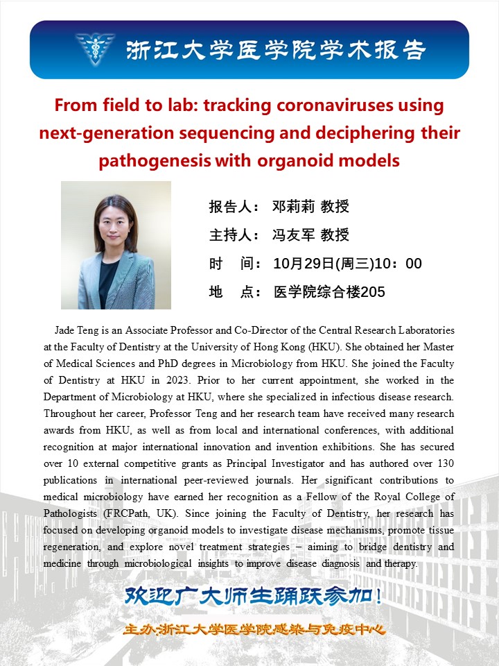 学术报告-From field to lab: tracking coronaviruses using next-generation sequencing and deciphering their pathogenesis with organoid models