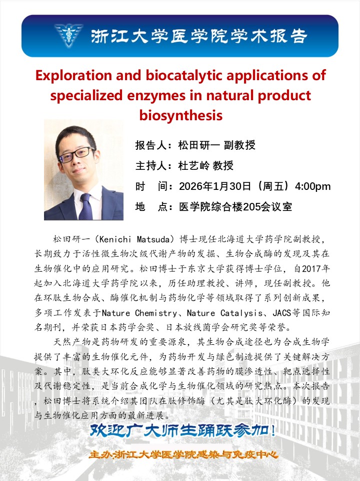学术报告-Exploration and biocatalytic applications ofspecialized enzymes in natural productbiosynthesis