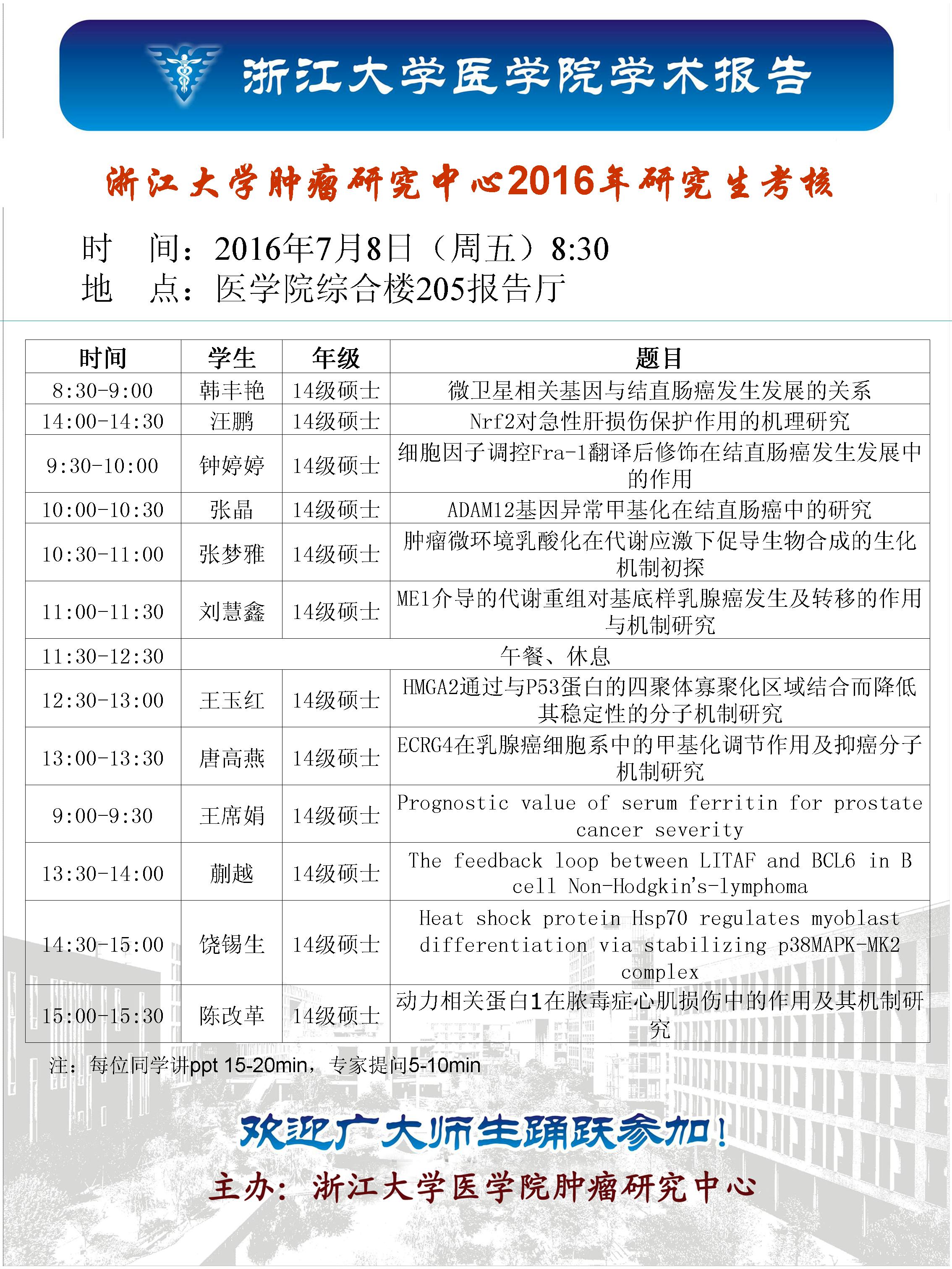 437bwin必赢国际官网肿瘤研究中心2016年研究生考核