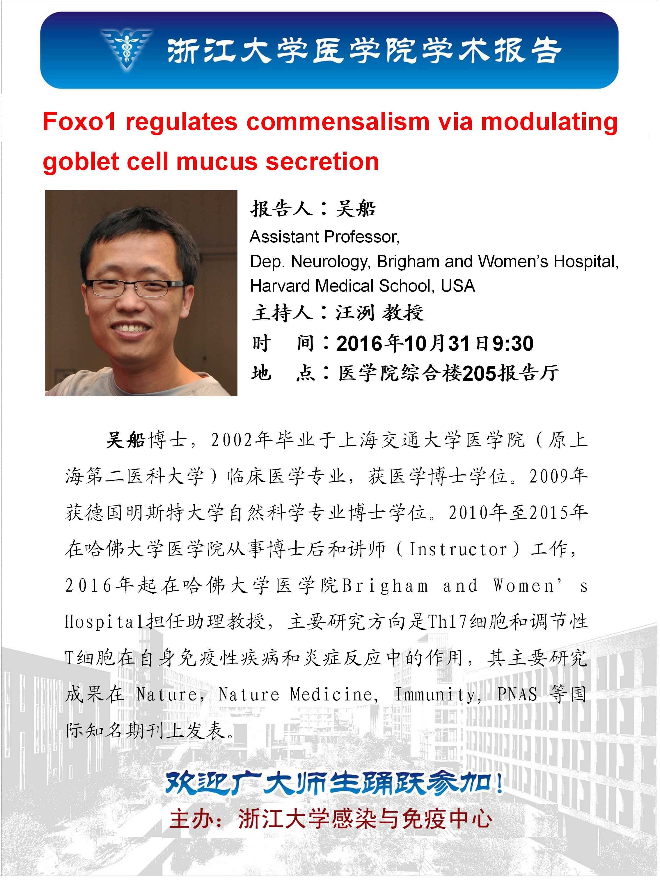 Foxo1 regulates commensalism via modulating goblet cell mucus secretion